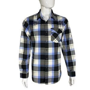 Ag~ileCouture Men’s Embroidered Plaid Tejano Western Style Shirt