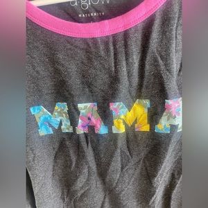 Ruched sides and a fun graphic make this maternity a:glow tee a great casual choice.