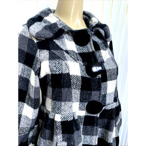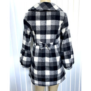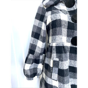 Agnes B Pea Coat Plaid Black White Jacket Puff Sleeve Snap Slip Pockets …