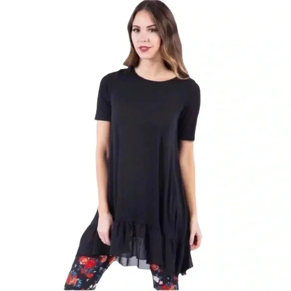 Agnes & Dora Black Tunic Blouse Chiffon Ruffle Half Sleeve Soft Airy Size Medium