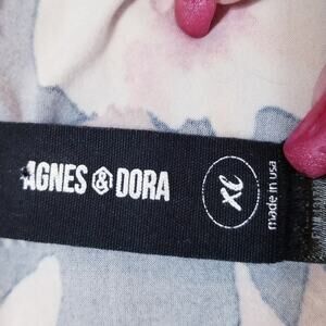 Agnes & Dora - Multicolor Floral Print Dress; Size XL; Material - 96% Polyester, 4% Spandex; Care - Machine Wash gentle, Cold, Line Dry; Made in USA; Scoop Neck, Long Sleeves, Gathering at Waist Front & Back; Mini Length, Can be Tunic or Mini Dress,
