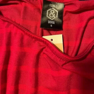 Agnes & Dora Pink Fuchsia Red Muted Stripe Dress Maternity New Mom Side Pockets