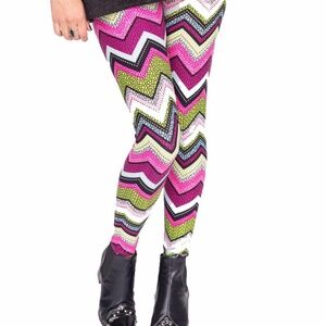 Agnes & Dora S/M Leggings Chevron Scales BRIGHT Leggings NWT w Original Dust Bag