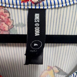 Agnes & Dora Tunic Tank Blue White Pinstripes Floral Birds Size M Flowy Stretch