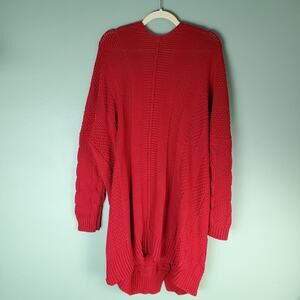 Agnes & Dora Women's Red Chunky Boyfriend Cardigan V-Neck Cable Knit Button Front Size XL