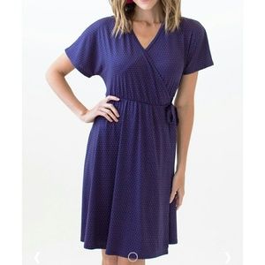 Agnes & Dora Nightengale Navy Fuchsia Polka Dot Wrap Dress M