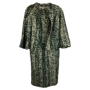 Agnona Jacket & Sleeveless Dress Set Womens EUR42 Tan Dark Green Wool Polka Dots