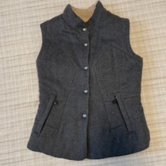100% cashmere vest. Made in Italy. Super soft and comfortable. Missing one button on the outside but not noticeable. I have a picture of me pointing at where button should be. If the inner button were not there, you can't tell there's a missing button outside. It doesn't have the size but fits like a small/medium womens. Please check the measurements on the pictures.