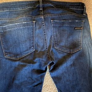 Skinny low rise dark blue distressed jeans