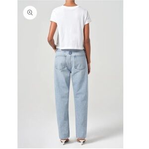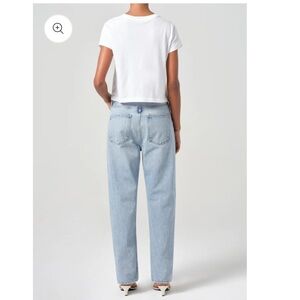 AGOLDE 90'S MID RISE STRAIGHT inspired fit, crafted from vintage marbled indigo denim and regenerative cotton, offers a relaxed mid-rise, an eased fit through the hips, and a loose, straight leg. Size 32