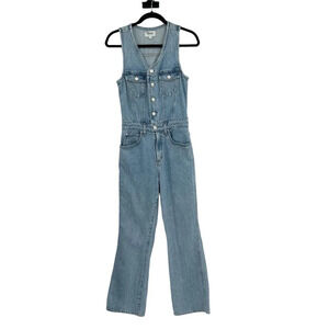 Agolde 70s Trucker Jumpsuit Sleeveless Straight Leg Button Denim Blue Size 2