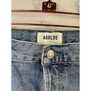Agolde 90s Denim Shorts Marquee Blue Womens Size 34 Raw Hem long Retro High rise