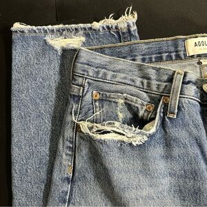Agolde 90's Mid Rise Straight Button Fly Distressed Medium Wash Size 27