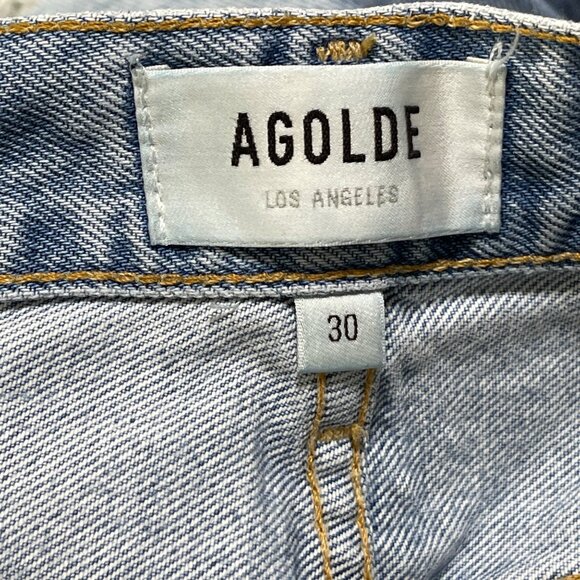Agolde 90's Mid-Rise Straight Destroyed Size 30 Light Wash Button Fly