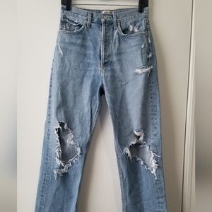 Agolde 90's Women's Jean's in Fall Out Distressed Mid Rise Straight Fit Sz 25