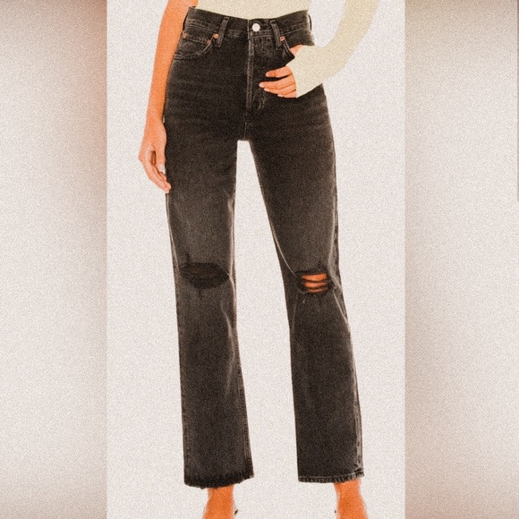 Agolde 90s pinch waist dark wash howl distress knee jeans