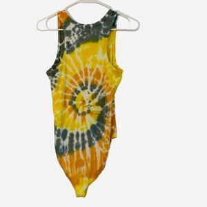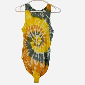 Agolde Antropologie Women's Medium Bodysuit Ribbed Tank Top Swirled Tie Dye