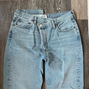 Agolde | Asymmetrical Cross Button Straight Leg Denim Jeans, Size 30