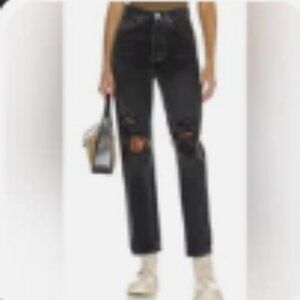Agolde Black High Waist Ripped Button Fly Skinny Jeans Sz 25