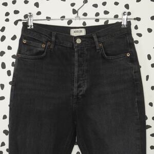 Agolde Black Wash Distressed Nico High Rise Slim Jeans