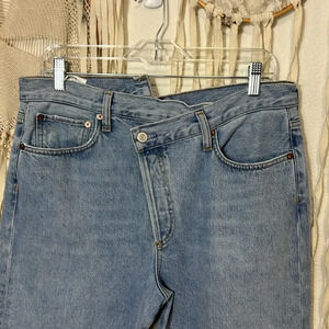 Agolde Blue Denim Fold Over Waist Jeans Size 30