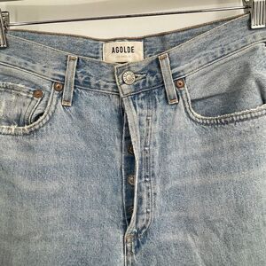 Agolde Blue Distressed Button Fly Cotton Riley High Rise Straight Jeans Size 28