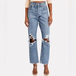 Agolde Blue Distressed Straight Leg Jeans