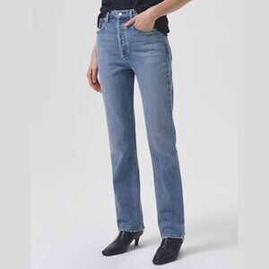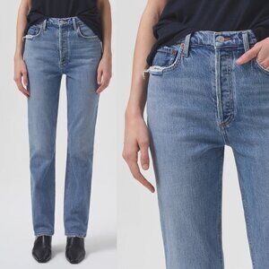 Agolde Blue Freya High-Rise Slim-Leg Stretch Organic Jeans Size 28 26970