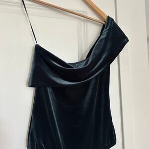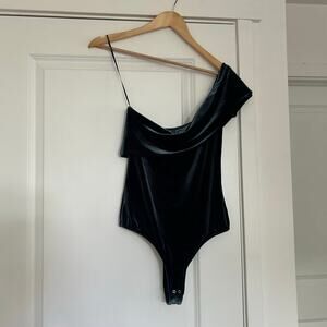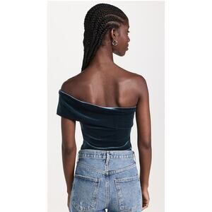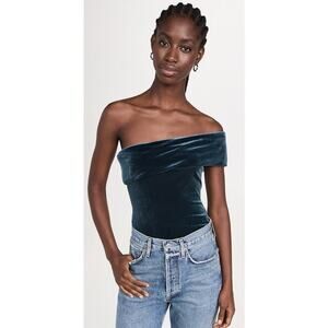 Agolde Bree Banded Thong Bodysuit Women’s Medium Velvet Blue Off The Shoulder
