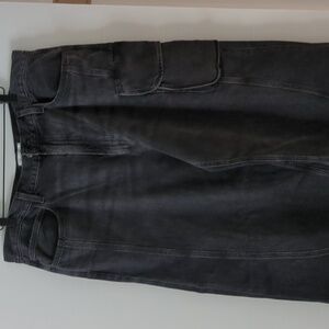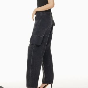 The Cass has a relaxed, loose fit and a voluminous leg that tapers down to the ankle. The high-rise waist hits above the hips creating a flattering silhouette from every angle. This ultra-baggy fit pairs best with a fitted tee or a sleek bodysuit. This fit is true to size. Washed, lived in black with cargo flap pockets and seam detailing Feels Like: Non-stretch organic cotton with vintage character and a super soft hand