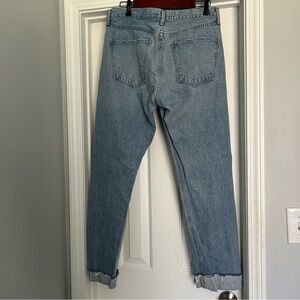 Excellent condition. These are cuffed at the bottom but can be uncuffed if desired. Stylish and comfortable light blue jeans perfect for any occasion. These jeans offer a classic fit and timeless style.