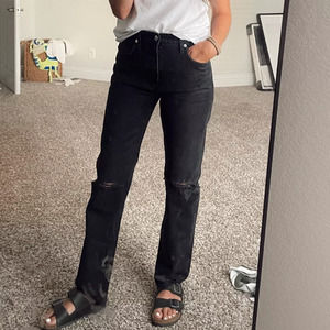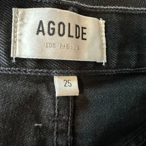 Agolde Cherie High Rise Straight Jeans Black 25x31 Busted Knee Rigid Raw Hem