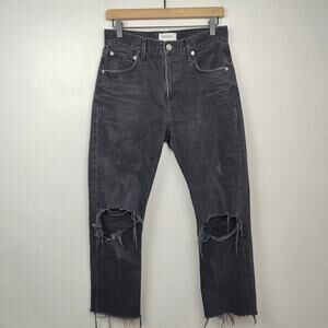 Agolde Cherie High Rise Straight Jeans Womens 26 Distressed Black Wash Organic Cotton