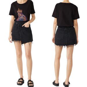 Agolde Criss Cross Distressed Jean Denim Mini Skirt Size 30 In Pivot Wash Black