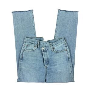 Agolde Criss Cross Straight Frayed High Rise Denim Jeans Button Fly Size 26