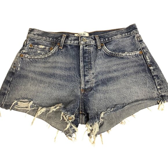 Agolde Cutoff Raw Hem Jean Denim Shorts Blue Sz 28