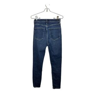 Stylish dark blue skinny jeans. High-rise fit. Classic five-pocket design. Perfect for any occasion.