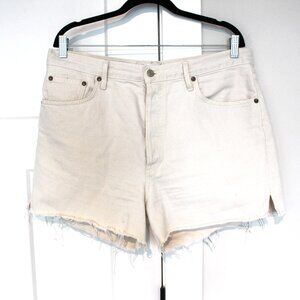 Agolde Dee High Rise Paper White Cotton Raw Cut Frayed Edge Shorts 32 Revolve