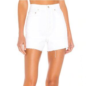 Agolde X Revolve Dee High Rise Paper White Cotton Raw Cut Frayed Edge Shorts