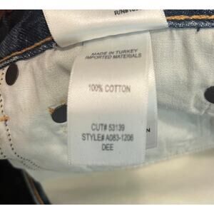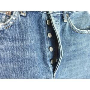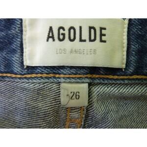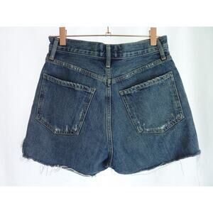 Agolde Dee distressed denim jean shorts with high waist. Button fly.