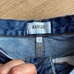 Agolde Dee Ultra High Rise Denim Distressed Blue Jean Shorts size 23