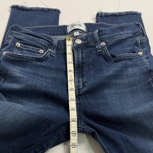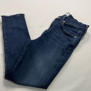 Stylish cropped jeans in deep blue. Ideal for everyday wear.