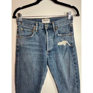 Agolde Denim Jamie High Rise Straight Leg Jean Medium Blue Distressed Capsule