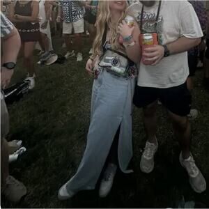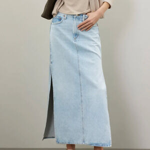 Western cowgirl vibes from this a-line full maxi skirt with rigid denim, 5 pocket style , two side slits show off your favorite pair of boots. So versatile, casual to festival, dress boho to western. flaw see detais below