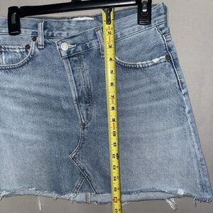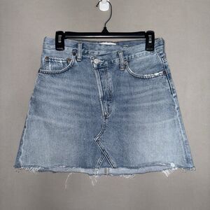 Agolde Denim Skirt 25 Blue Distressed Criss Cross Frayed Hem Organic Cotton