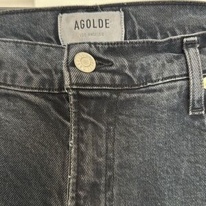 Agolde Denim Toni Mid Rise Straight Frayed Raw Hem Black Size 30