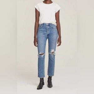 Agolde Denim Women’s Riley High Rise Distressed Straight Crop Jeans Whiplash 30