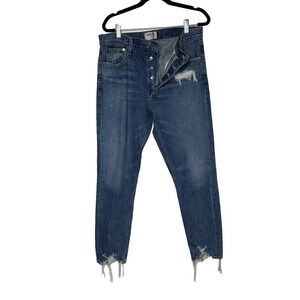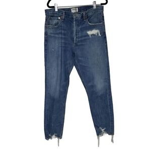Agolde Distressed Crop Button Fly Jeans Women's Straight Leg Dark Wash Size 30