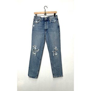 Agolde Fen High Rise Relaxed Taper Destroyed Blue Jeans in Wander Size 26