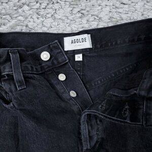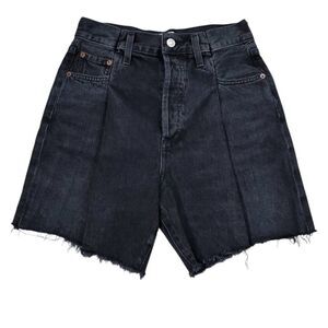 Agolde Fold Waistband Jean Shorts Black Conduct Pleated Raw Hem Size 24 Faded